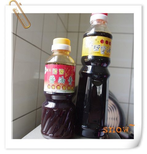 醬油及醬油膏倒出後,兩種顏色極像,淺淺的、透亮透亮的。