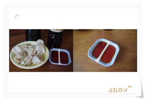 假日中午,煮了水餃,試試沾醬。